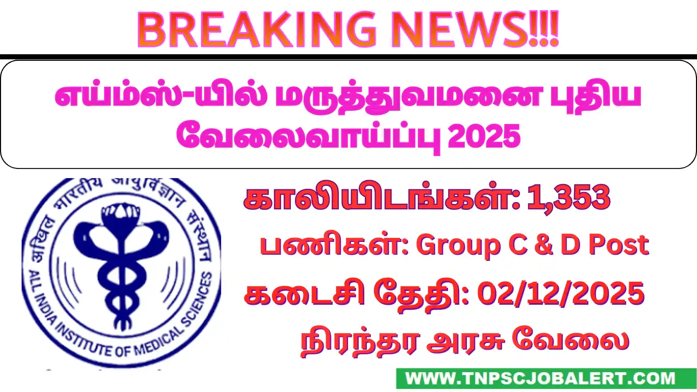 AIIMS Job Recruitment 2025 releases the official notification from the starting date of 14/11/2025 and the closing date of 02/12/2025 . For the applying AIIMS Job Recruitment 2025 – 1,353, UDC, Lab Attendant Post procedure, the candidate needs to fill out their respective application either online or offline as per the notification released by AIIMS . Below we have explained briefly explained about the AIIMS Job Recruitment 2025 – 1,353, UDC, Lab Attendant Post like education details, age limits, how to apply, closing date of AIIMS Job Recruitment 2025 .