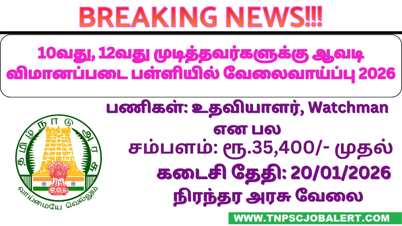 Air Force School Avadi Job Recruitment 2026 releases the official notification from the starting date of 01/01/2026 and the closing date of 20/01/2026 . For the applying Air Force School Avadi Job Recruitment 2026 – 18, Teaching & Non Teaching Post procedure, the candidate needs to fill out their respective application either online or offline as per the notification released by Air Force School Avadi . Below we have explained briefly explained about the Air Force School Avadi Job Recruitment 2026 – 18, Teaching & Non Teaching Post like education details, age limits, how to apply, closing date of Air Force School Avadi Job Recruitment 2026 .