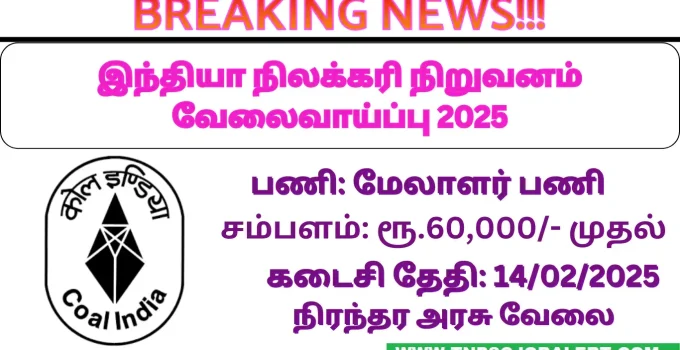 Coal India Limited Job Recruitment 2025 official notification available on (15/01/2025 )
