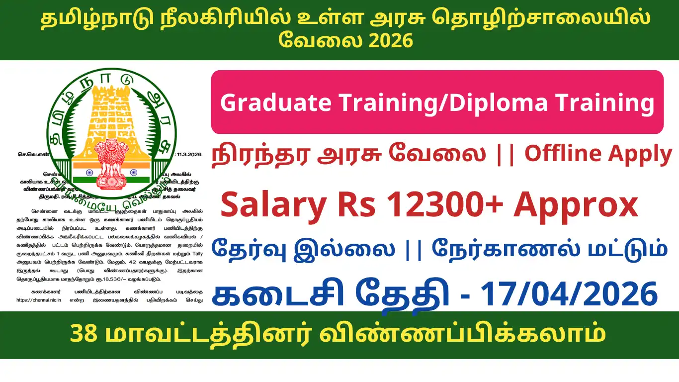 Cordite Factory Aruvankadu Job Recruitment 2026 releases the official notification from the starting date of 28/03/2026 and the closing date of 17/04/2026 . For the applying Cordite Factory Aruvankadu Job Recruitment 2026 – 40, Graduate/ Diploma Training Post procedure, the candidate needs to fill out their respective application either online or offline as per the notification released by Cordite Factory Aruvankadu . Below we have explained briefly explained about the Cordite Factory Aruvankadu Job Recruitment 2026 – 40, Graduate/ Diploma Training Post like education details, age limits, how to apply, closing date of Cordite Factory Aruvankadu Job Recruitment 2026 .