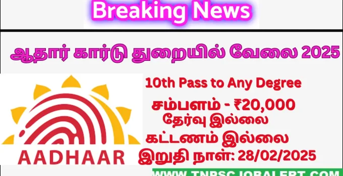 | Aadhaar Supervisor/ Operator | 12th std/ ITI/ Diploma |