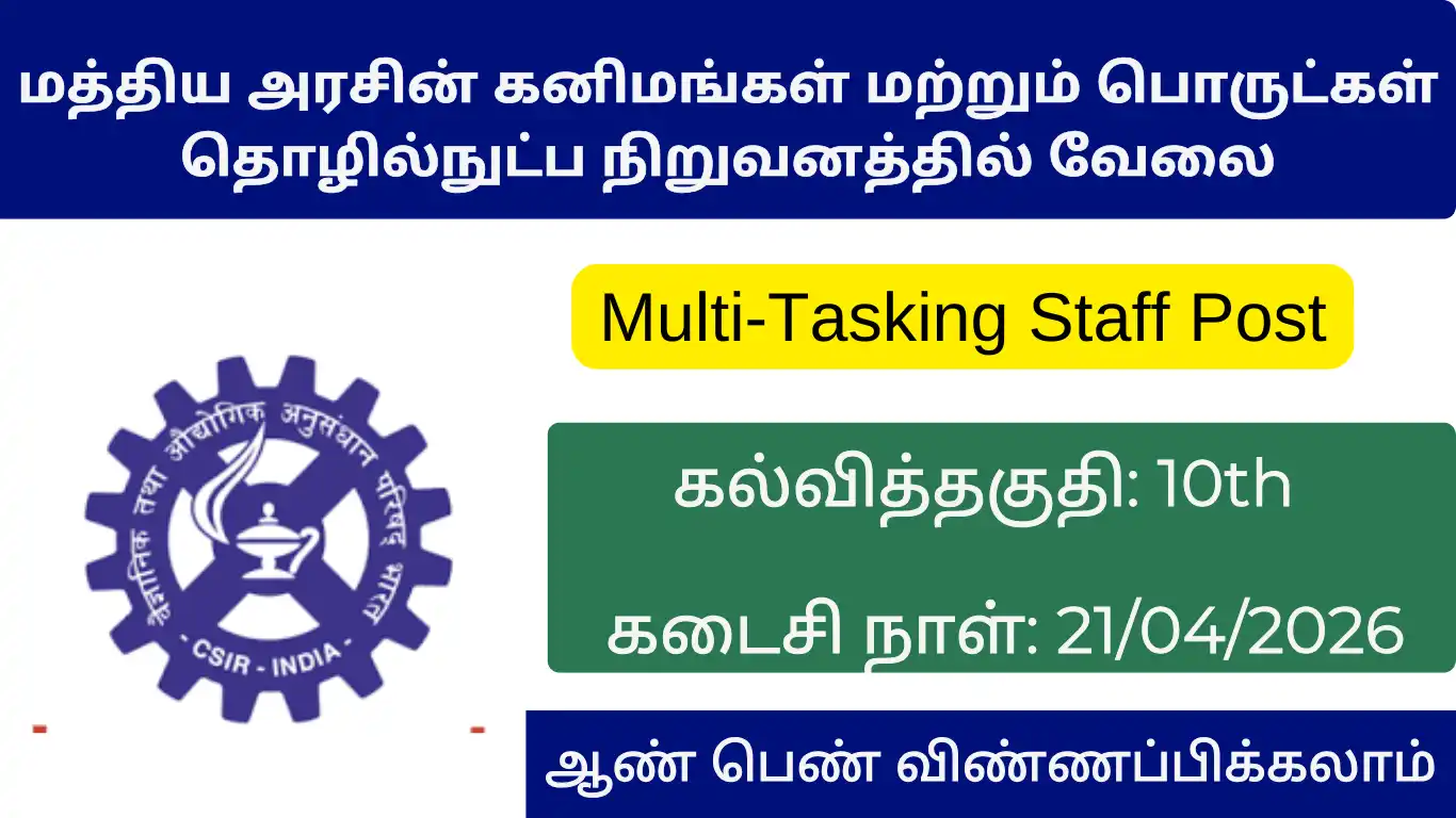 CSIR IMMT Job Recruitment 2026 – Various, Multi-Tasking Staff Post have released the notification, for helpful information like Multi-Tasking Staff with the job vacancies of Various Post. The job vacancies announcement for this job has been located in the place of Bhubaneswar . For this job Recruitment, the candidate should have a minimum education eligibility criteria like 10th std to their current job. Eligible candidates can apply for this job vacancy of Various,Multi-Tasking Staff Post.