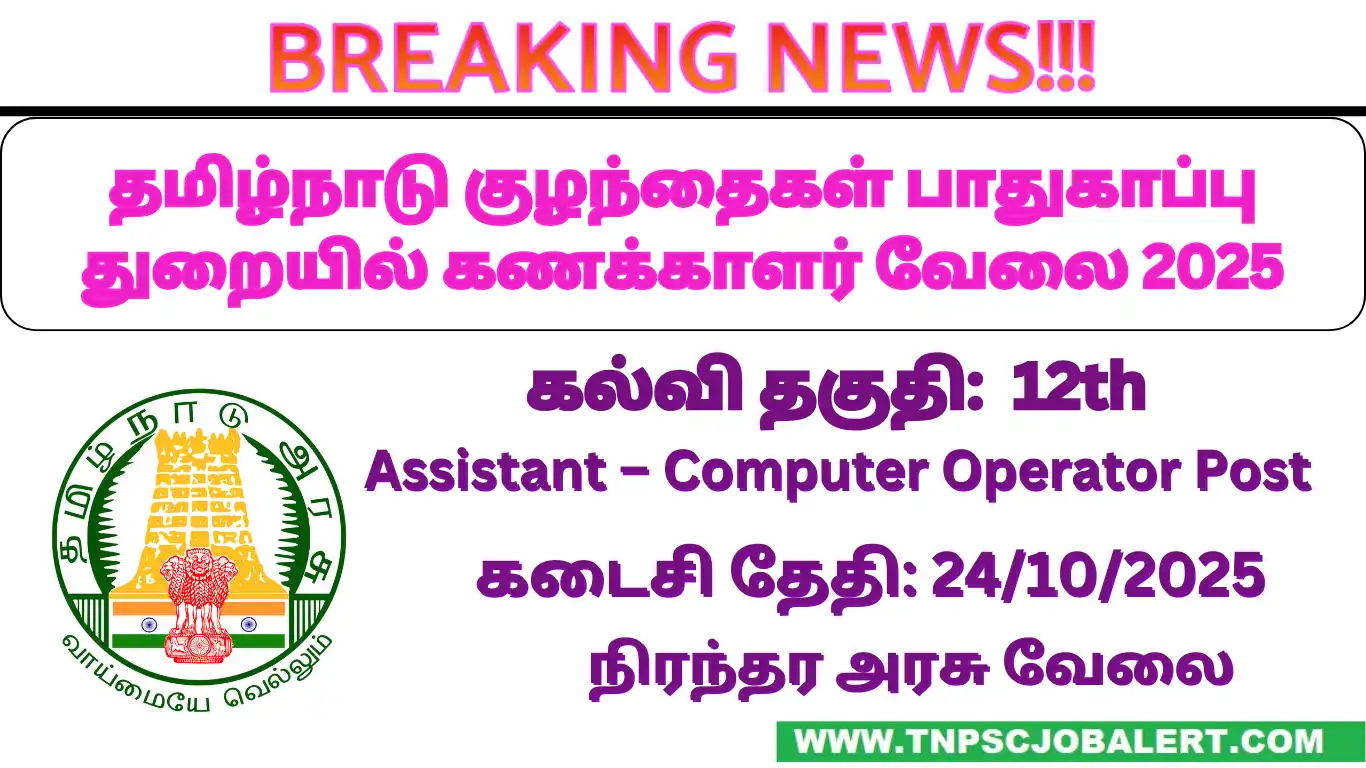 DCPU Tamilnadu Job Recruitment 2025 – Various, Assistant – Computer Operator Post Short Details:-