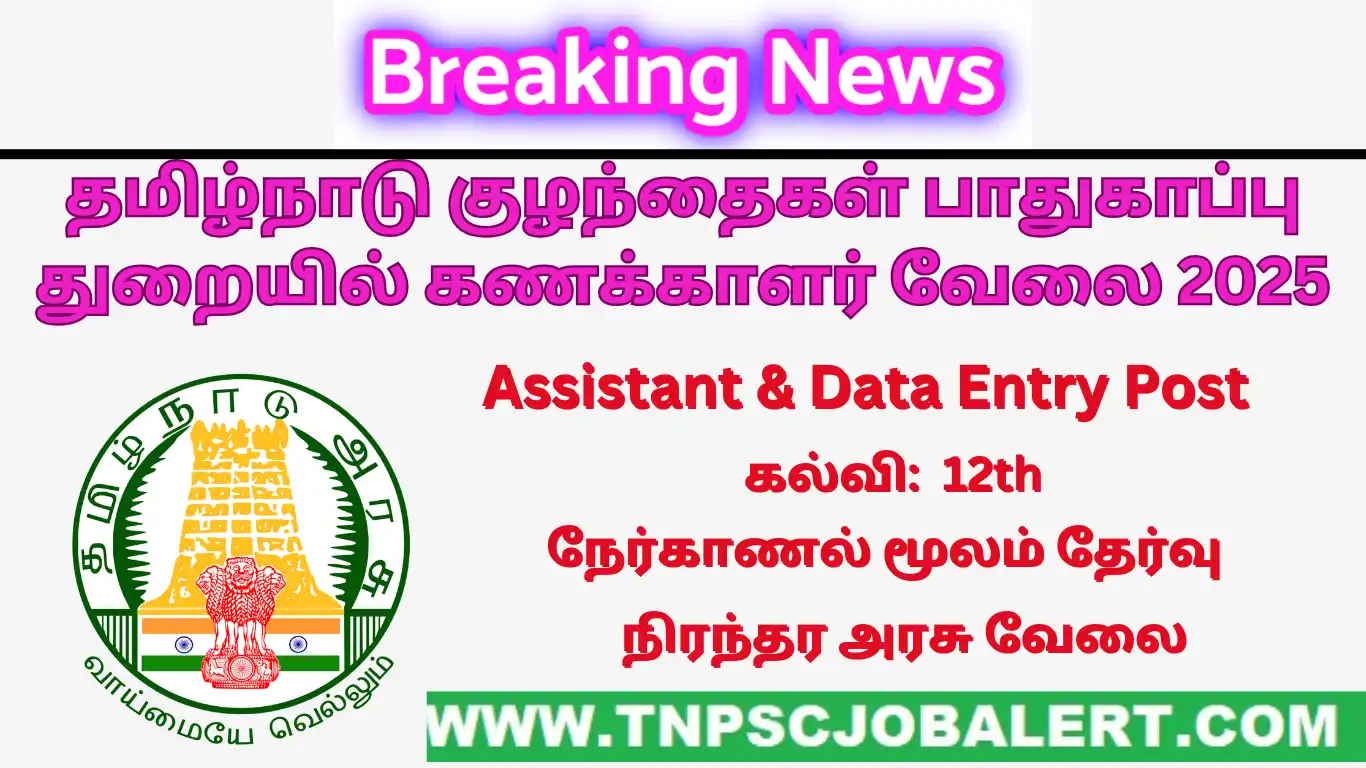 DCPU Tamilnadu Job Recruitment 2025 – Various, Assistant & Data Entry Post