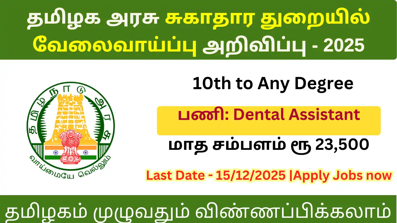 District Health Society Job Recruitment 2025 releases the official notification from the starting date of 28/11/2025 and the closing date of 15/12/2025. For the applying District Health Society Job Recruitment 2025 – 19, Dental Assistant Post procedure, the candidate needs to fill out their respective application either online or offline as per the notification released by DHS Tiruppur. Below we have explained briefly explained about the  District Health Society Job Recruitment 2025 – 19, Dental Assistant Post like education details, age limits, how to apply, closing date of District Health Society Job Recruitment 2025