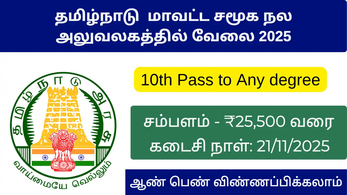 DSWO Chennai Job Recruitment 2025 releases the official notification from the starting date of 13/11/2025 and the closing date of 21/11/2025 . For the applying DSWO Chennai Job Recruitment 2025 – Various, Case worker, Security Guard Post procedure, the candidate needs to fill out their respective application either online or offline as per the notification released by DSWO Chennai . Below we have explained briefly explained about the DSWO Chennai Job Recruitment 2025 – Various, Case worker, Security Guard Post like education details, age limits, how to apply, closing date of DSWO Chennai Job Recruitment 2025 .