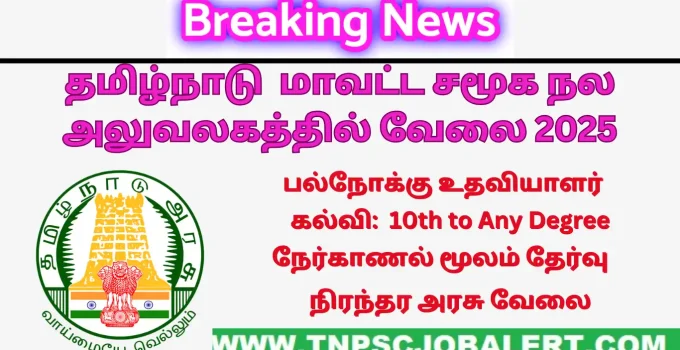 DSWO Dindigul Job Recruitment 2025 – 10, Multipurpose Assistant Post have released the notification, for helpful information like Multipurpose Assistant with the job vacancies of 10 Post. The job vacancies announcement for this job has been located in the place of Dindigul (TN) . For this job Recruitment, the candidate should have a minimum education eligibility criteria like 10th std, LLB, Degree to their current job. Eligible candidates can apply for this job vacancy of 10,Multipurpose Assistant Post.