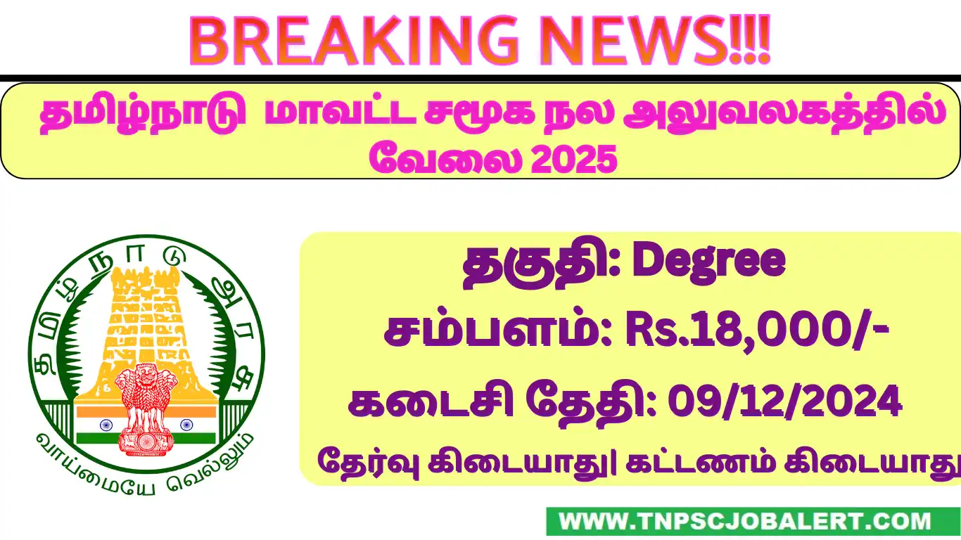 DSWO Theni Job Recruitment 2025 releases the official notification from the starting date of 26/11/2025 and the closing date of 09/12/2025. For the applying DSWO Theni Job Recruitment 2025 – Various, Case worker Post procedure, the candidate needs to fill out their respective application either online or offline as per the notification released by DSWO Theni. Below we have briefly explained about the DSWO Theni Job Recruitment 2025 – Various, Case worker Post like education details, age limits, how to apply, and closing date of DSWO Theni Job Recruitment 2025.