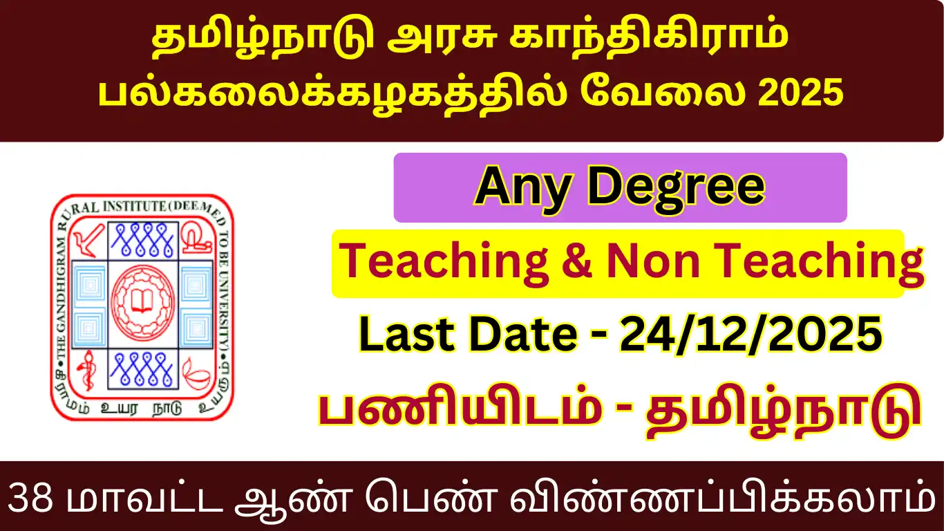 Gandhigram Rural Institute Job Recruitment 2025 releases the official notification from the starting date of 08/12/2025 and the closing date of 24/12/2025 . For the applying Gandhigram Rural Institute Job Recruitment 2025 – Various, Teaching & Non-Teaching Posts procedure, the candidate needs to fill out their respective application either online or offline as per the notification released by GRI Dindigul . Below we have explained briefly explained about the  Gandhigram Rural Institute Job Recruitment 2025 – Various, Teaching & Non-Teaching Posts like education details, age limits, how to apply, closing date of Gandhigram Rural Institute Job Recruitment 2025