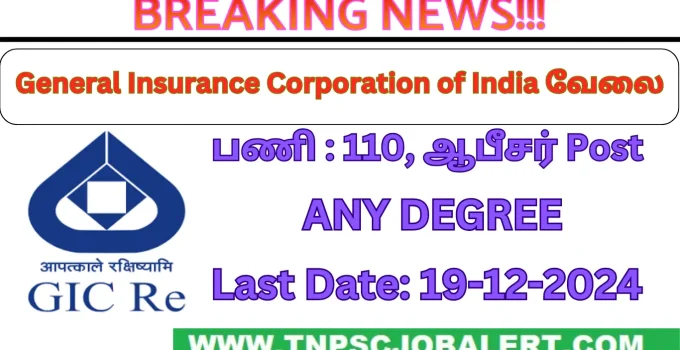 General Insurance Corporation Job Recruitment 2024 official notification available on (04/12/2024)