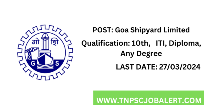 Goa Shipyard Limited Job Recruitment 2024 official notification available on (28/02/2024)