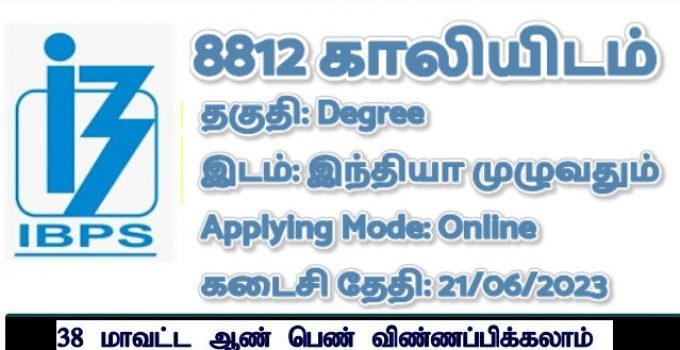 IBPS Job Recruitment 2023 releases the official notification from the starting date of 01/06/2023 and the closing date of 21/06/2023. For the applying IBPS Job Recruitment 2023 For 8,611, Office Assistant, Officers (Scale-I, II & III) Post procedure, the candidate needs to fill out their respective application either online or offline as per the notification released by IBPS . Below we have explained briefly explained about the IBPS Job Recruitment 2023 For 8,611, Office Assistant, Officers (Scale-I, II & III) Post like education details, age limits, how to apply, closing date of IBPS Job Recruitment 2023.