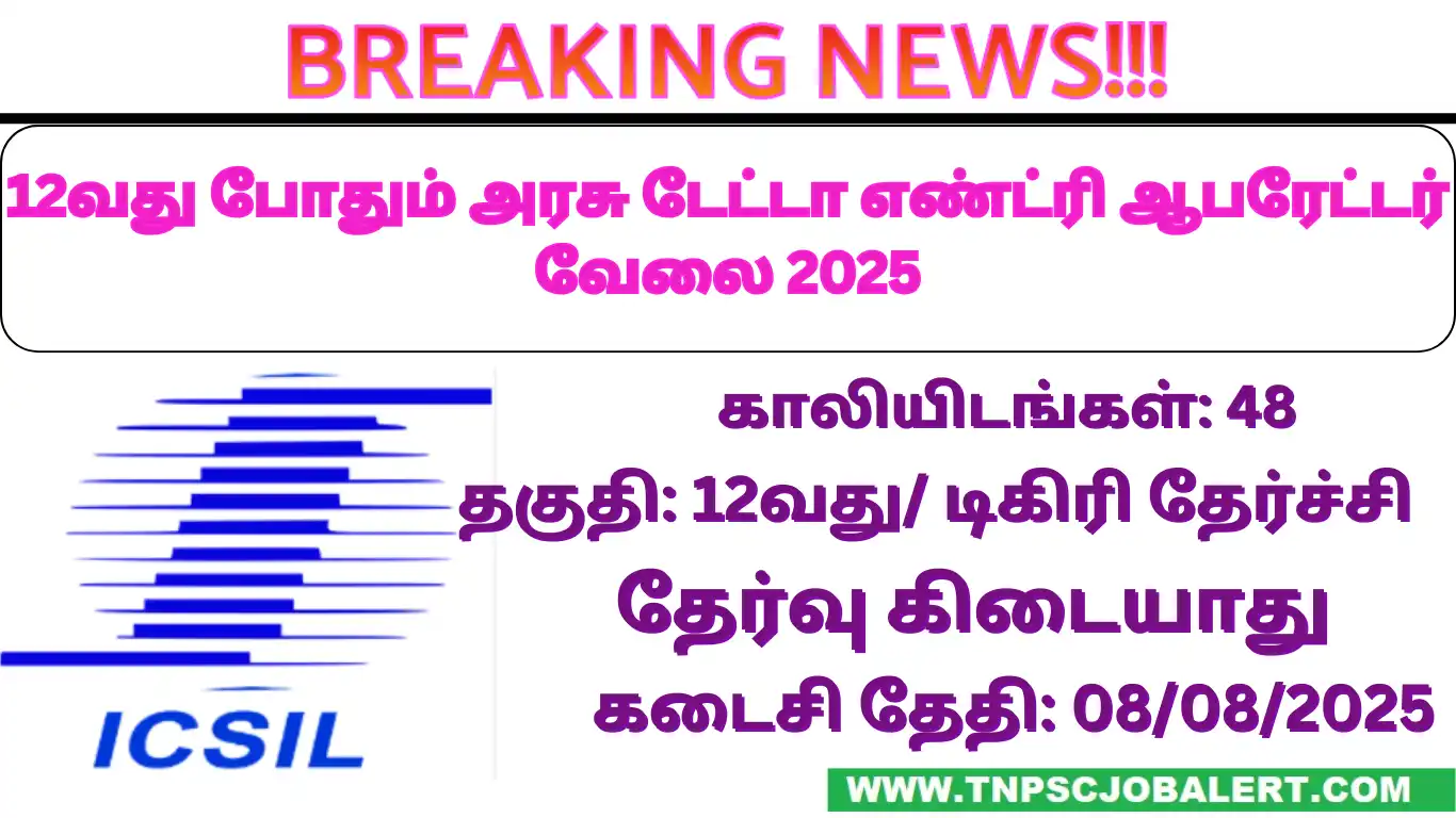 ICSIL Job Recruitment 2025 releases the official notification from the starting date of 07/08/2025 and the closing date of 08/08/2025 . For the applying ICSIL Job Recruitment 2025 – 48, Data Entry Operator Post procedure, the candidate needs to fill out their respective application either online or offline as per the notification released by ICSIL . Below we have explained briefly explained about the ICSIL Job Recruitment 2025 – 48, Data Entry Operator Post like education details, age limits, how to apply, closing date of ICSIL Job Recruitment 2025 .
