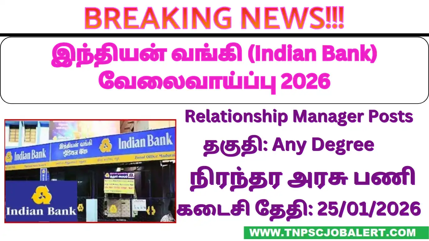 Indbank Job Recruitment 2026 releases the official notification from the starting date of 07/01/2026 and the closing date of 25/01/2026 . For the applying Indbank Job Recruitment 2026 – 20, Relationship Manager Post procedure, the candidate needs to fill out their respective application either online or offline as per the notification released by Indbank . Below we have explained briefly explained about the Indbank Job Recruitment 2026 – 20, Relationship Manager Post like education details, age limits, how to apply, closing date of Indbank Job Recruitment 2026 .