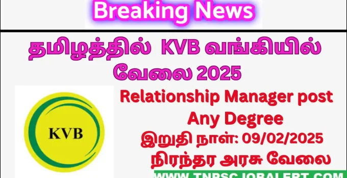 According to the post of KVB Bank Job Recruitment 2025 – Various, Relationship Manager Post recruits Various candidates to select. All candidates have to be requested to check the current job openings of KVB Bank Job Recruitment 2025 before applying to this job recruitment.