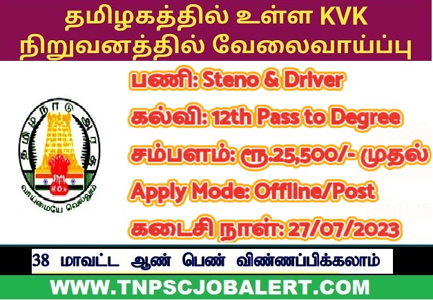 KVK Job Recruitment 2023 releases the official notification from the starting date of 08/07/2023 and the closing date of 27/07/2023. For the applying KVK Job Recruitment 2023 For Various, Stenographer, Driver Post procedure, the candidate needs to fill out their respective application either online or offline as per the notification released by KVK . Below we have explained briefly explained about the KVK Job Recruitment 2023 For Various, Stenographer, Driver Post like education details, age limits, how to apply, closing date of KVK Job Recruitment 2023.