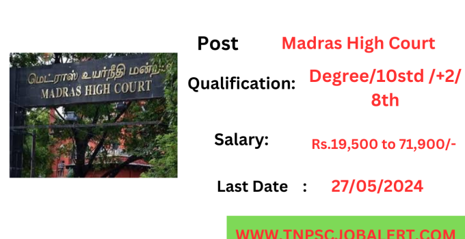 Madras High Court Job Recruitment 2024 releases the official notification from the starting date of 28/04/2024 and the closing date of 27/05/2024. For the applying Madras High Court Job Recruitment 2024 – 2329 , Office Assistant post procedure, the candidate needs to fill out their respective application either online or offline as per the notification released by Madras High Court. Below we have explained briefly explained about the Madras High Court Job Recruitment 2024 – 2329 , Office Assistant post like education details, age limits, how to apply, closing date of Madras High Court Job Recruitment 2024.