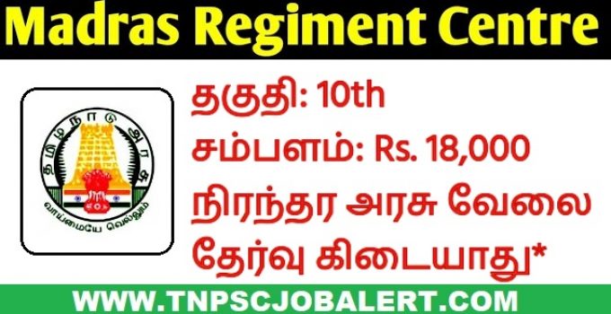There are single types of jobs given in the Madras Regimental Centre . For a brief explanation we have given below:-