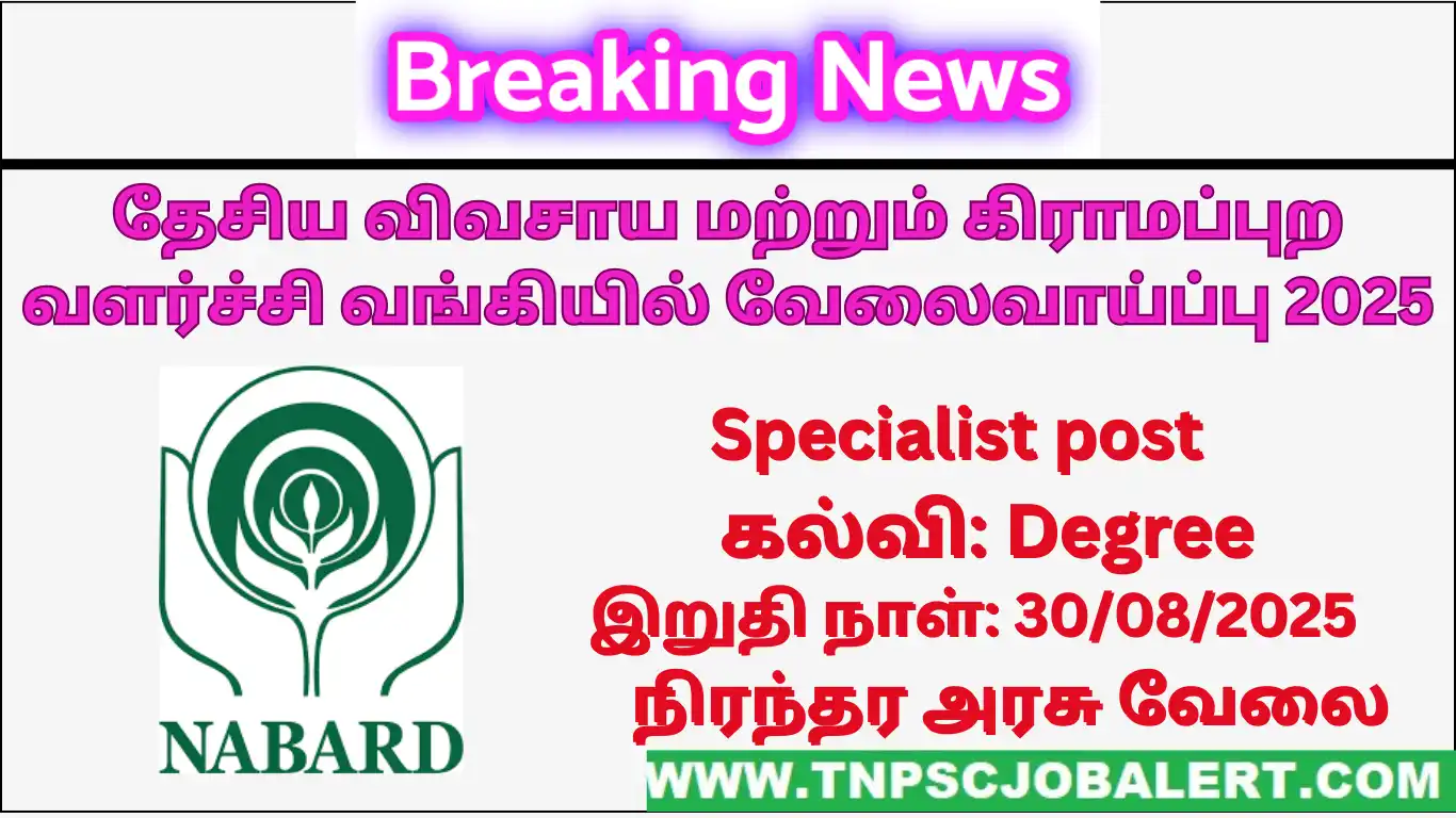 According to the post of NABARD Bank Job Recruitment 2025 – Various, Specialist Post recruits Various candidates to select. All candidates have to be requested to check the current job openings of NABARD Bank Job Recruitment 2025  before applying to this job recruitment.