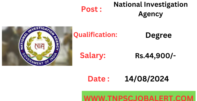 National Investigation Agency Job Recruitment 2024 releases the official notification from the starting date of 14/06/2024 and the closing date of 14/08/2024. For the applying National Investigation Agency Job Recruitment 2024 – 114, Inspector post procedure, the candidate needs to fill out their respective application either online or offline as per the notification released by National Investigation Agency. Below we have explained briefly explained about the National Investigation Agency Job Recruitment 2024 – 114, Inspector post like education details, age limits, how to apply, closing date of National Investigation Agency Job Recruitment 2024.
