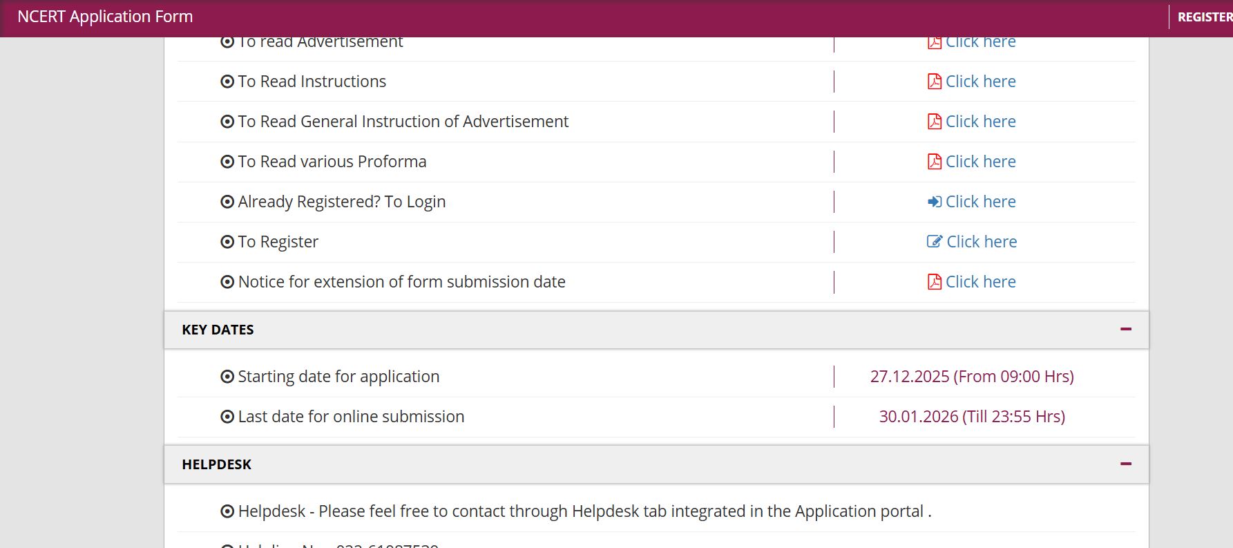NCERT Job Recruitment 2026 official notification available on (27/12/2025)