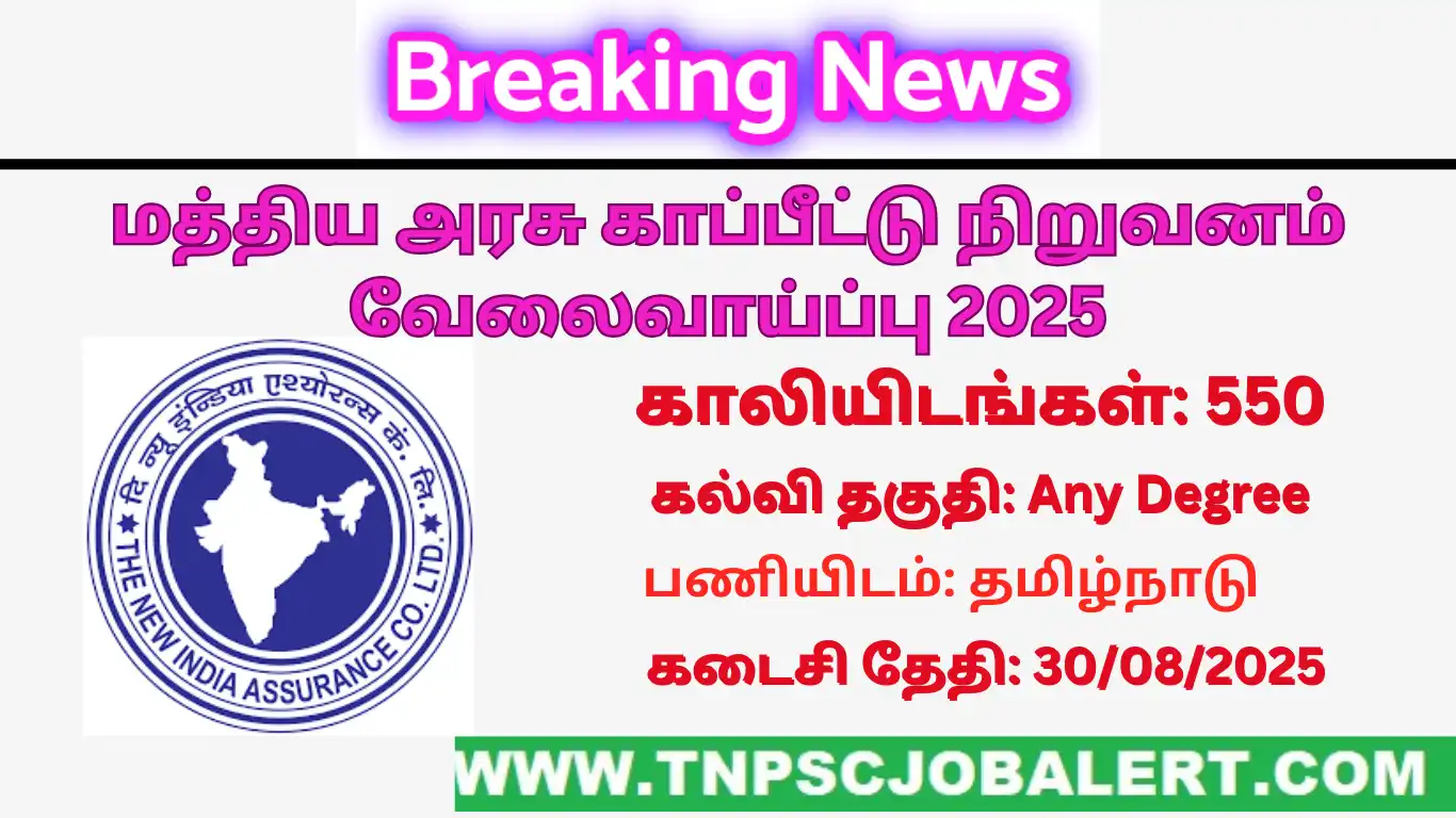 New India Assurance Company Job Recruitment 2025 releases the official notification from the starting date of 07/08/2025 and the closing date of 30/08/2025 . For the applying New India Assurance Company Job Recruitment 2025 – 550, Administrative Officers Post procedure, the candidate needs to fill out their respective application either online or offline as per the notification released by New India Assurance Company . Below we have explained briefly explained about the  New India Assurance Company Job Recruitment 2025 – 550, Administrative Officers Post like education details, age limits, how to apply, closing date of New India Assurance Company Job Recruitment 2025