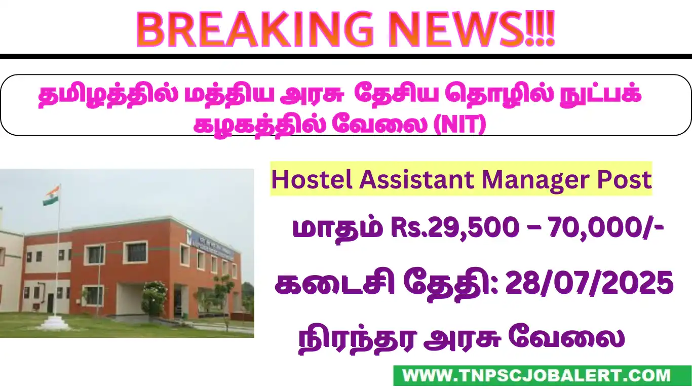 According to the post of NIT Trichy Job Recruitment 2025 – Various, Hostel Assistant Manager Post recruits Various candidates to select. All candidates have to be requested to check the current job openings of NIT Trichy Job Recruitment 2025 before applying to this job recruitment.