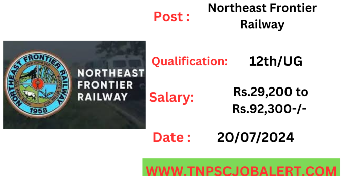 Northeast Frontier Railway Job Recruitment 2024 official notification available on (20/06/2024)