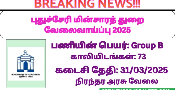 - Puducherry Electricity Dept Job Recruitment 2025 released recruitment posts of 73 in different types.