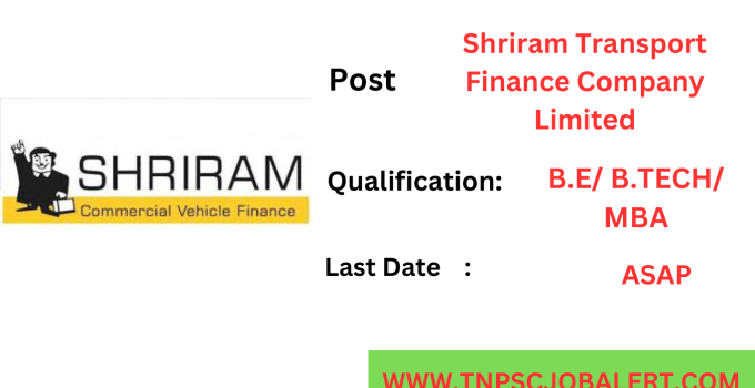 Shriram Transport Finance Company Limited Job Recruitment 2024 releases the official notification from the starting date of 01/05/2024 and the closing date of ASAP.. For the applying Shriram Transport Finance Company Limited Job Recruitment 2024 – Various, Management Trainee post procedure, the candidate needs to fill out their respective application either online or offline as per the notification released by Shriram Transport Finance Company Limited. Below we have explained briefly explained about the Shriram Transport Finance Company Limited Job Recruitment 2024 – Various, Management Trainee post like education details, age limits, how to apply, closing date of Shriram Transport Finance Company Limited Job Recruitment 2024.