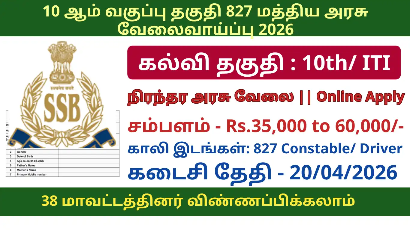 SSB Job Recruitment 2026 releases the official notification from the starting date of 21/03/2026 and the closing date of 20/04/2026 . For the applying SSB Job Recruitment 2026 – 827, Constable Post procedure, the candidate needs to fill out their respective application either online or offline as per the notification released by SSB . Below we have explained briefly explained about the  SSB Job Recruitment 2026 – 827, Constable Post like education details, age limits, how to apply, closing date of SSB Job Recruitment 2026
