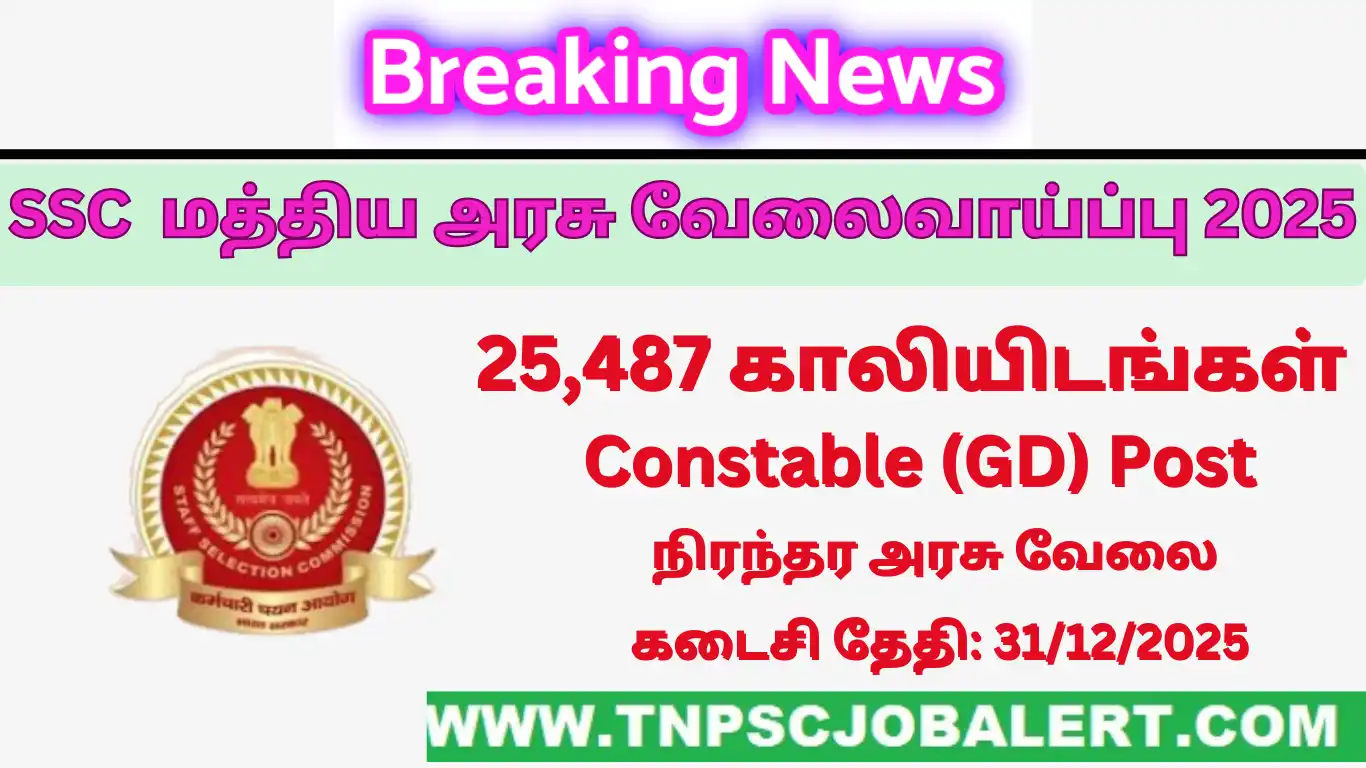 Staff Selection Commission Job Recruitment 2025 – 25,487, Constable (GD) Post Short Details:-