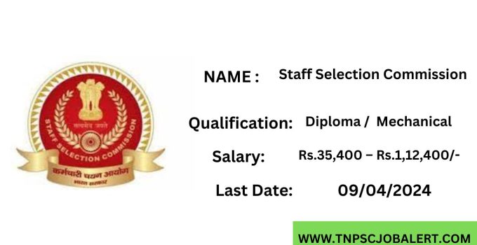 Applying for Staff Selection Commission jobs, the candidate should have some qualification with a minimum education Qualification of, Diploma/ Degree in Civil, Electrical, or Mechanical. For a brief explanation of Staff Selection Commission (SSC) Job Recruitment 2024, we have tabled below:-
