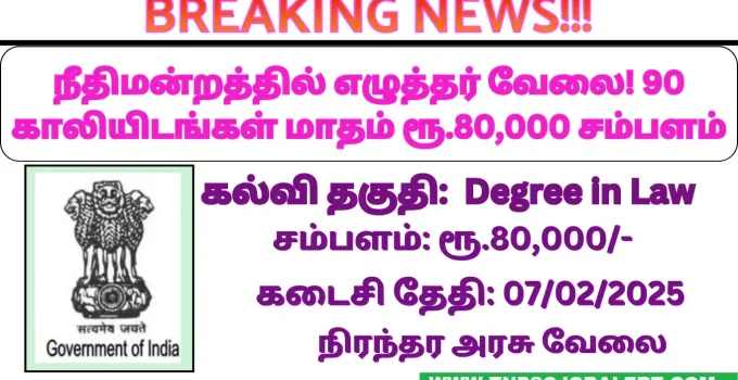 Supreme Court Job Recruitment 2025 – 90, Law Clerk Cum Research Associate Post Short Details:-