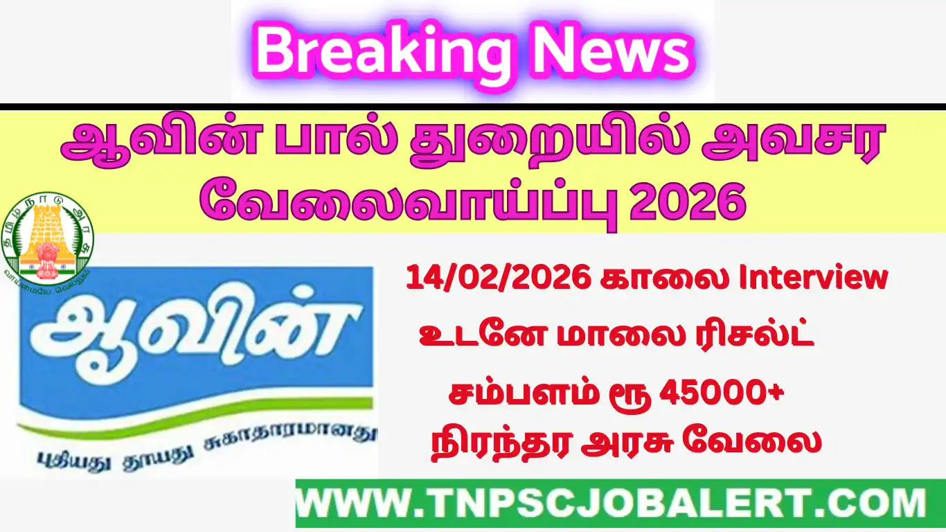 Tamilnadu Aavin Job Recruitment 2026 official notification available on (02/02/2026 )