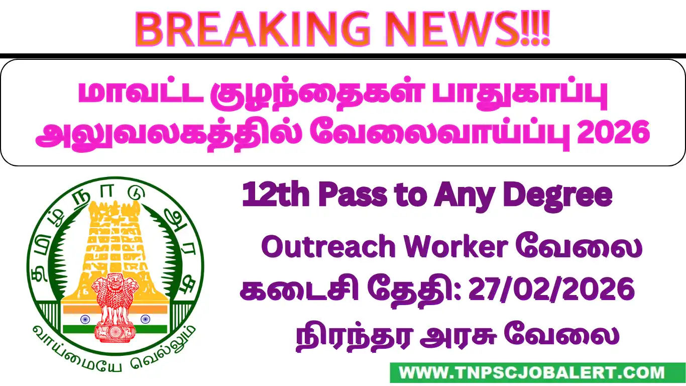 According to the post of Tamilnadu DCPU Job Recruitment 2026 – Various, Outreach worker Post recruits Various candidates to select. All candidates have to be requested to check the current job openings of Tamilnadu DCPU Job Recruitment 2026 before applying to this job recruitment.