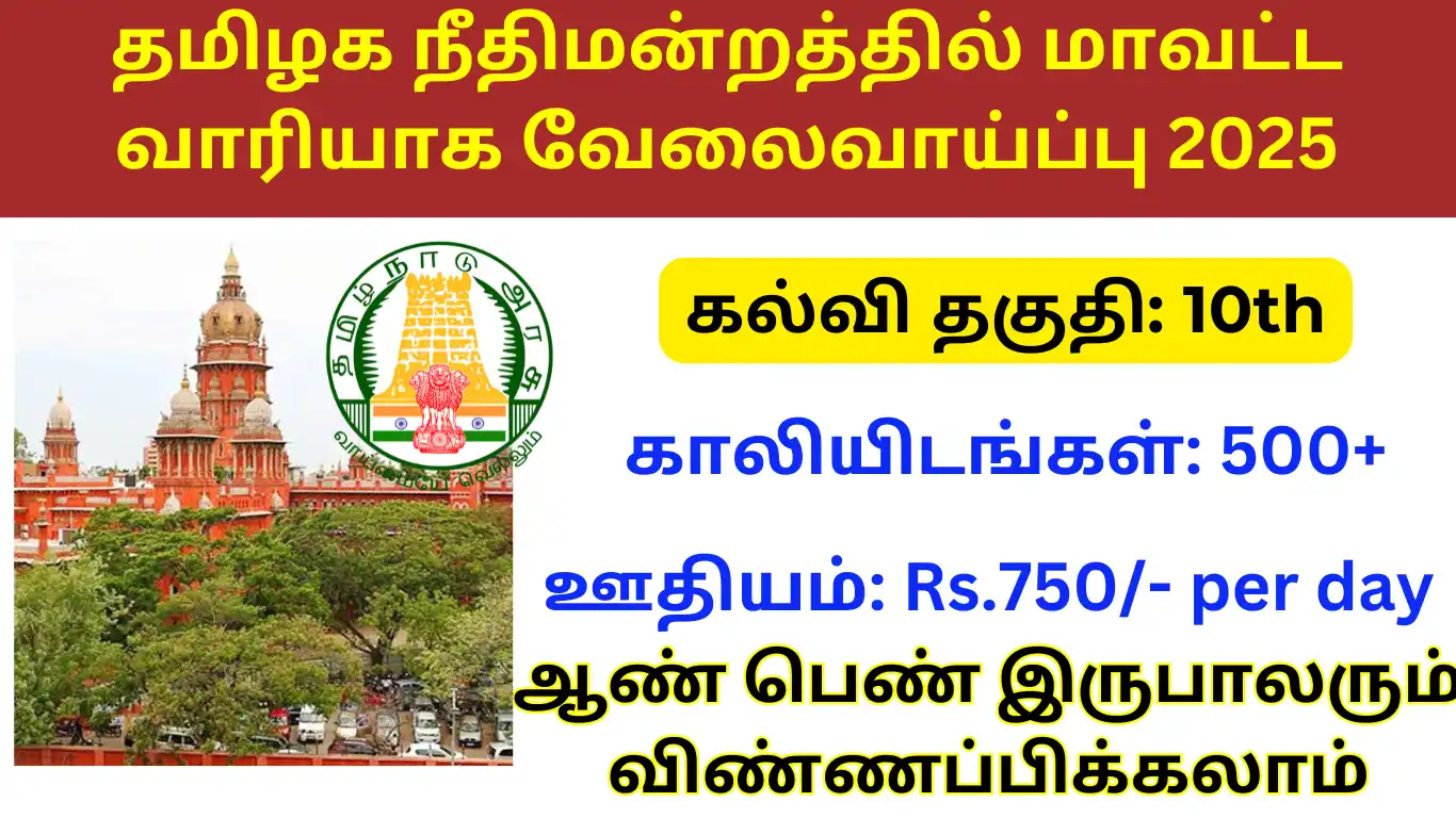 According to the post of Tamilnadu district court Job recruitment 2025 – 500, Para Legal Volunteer Post recruits 500 candidates to select. All candidates have to be requested to check the current job openings of Tamilnadu district court Job recruitment 2025 before applying to this job recruitment.