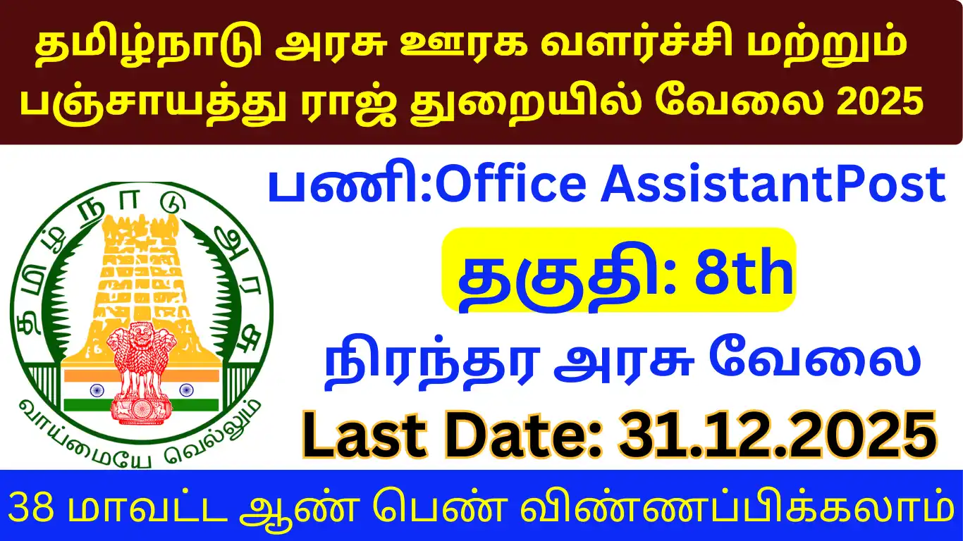 Tamilnadu Govt Rural Development and Panchayat Department (TNRD) Nilgiri Job Recruitment 2025 – Various, Office Assistant Post have released the notification, for helpful information like Office Assistant with the job vacancies of Various Post. The job vacancies announcement for this job has been located in the place of Nilgiri (TN) . For this job Recruitment, the candidate should have a minimum education eligibility criteria like 8th std to their current job. Eligible candidates can apply for this job vacancy of Various,Office Assistant Post.