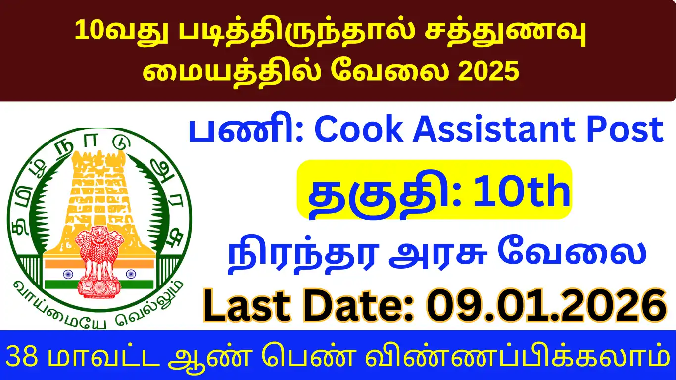 Tamilnadu Nutritional Dept Job Recruitment 2025 – 64, Cook Assistant Post Short Details:-
