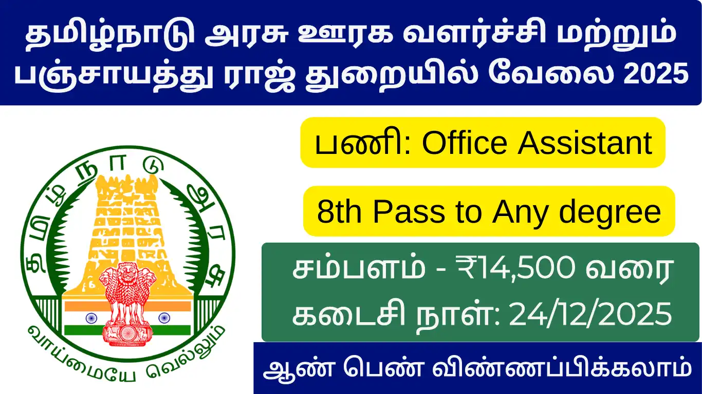 Tamilnadu Rural Development Dept Job Recruitment 2025 – Various, Office Assistant Post