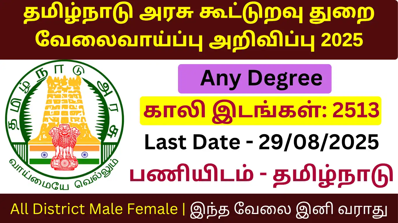 According to the post of TN Cooperative Bank Job Recruitment 2025 – 2,513, Assistant Post recruits 2,513 candidates to select. All candidates have to be requested to check the current job openings of TN Cooperative Bank Job Recruitment 2025 before applying to this job recruitment.
