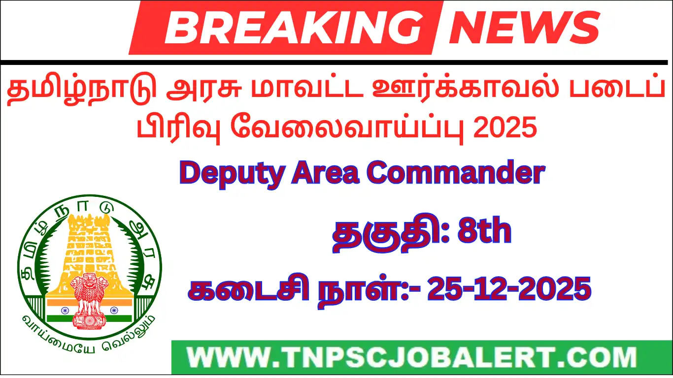 According to the post of TN District Home Guards Unit Job Recruitment 2025 – Various, Deputy Area Commander Post recruits Various candidates to select. All candidates have to be requested to check the current job openings of TN District Home Guards Unit Job Recruitment 2025 before applying to this job recruitment.