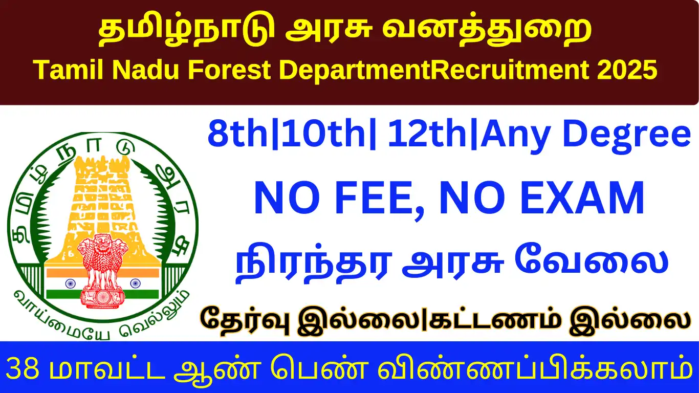 Applying for TN Forest Department   jobs, the candidate should have some qualification with a minimum education Qualification of, 8th,10th std, 12th std. For a brief explanation of TN Forest Department Job Recruitment 2025, we have tabled below:-