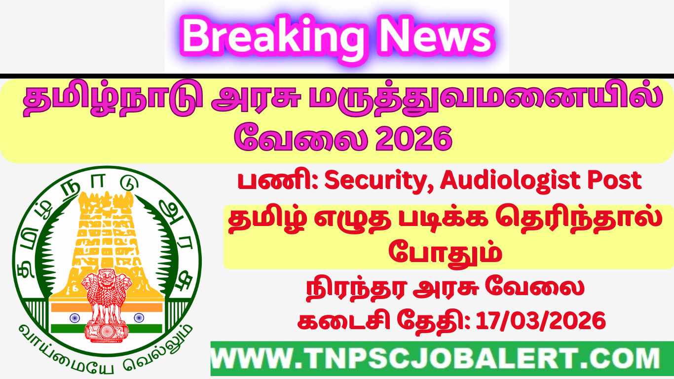 TN Govt Hospital requires the application form, to apply the Security, Audiologist posts by Online.