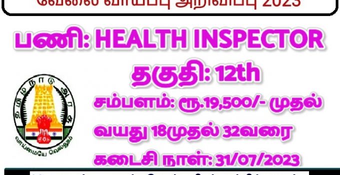 TN MRB Job Recruitment 2023 For 1,066, Health Inspector Post Short Details:-