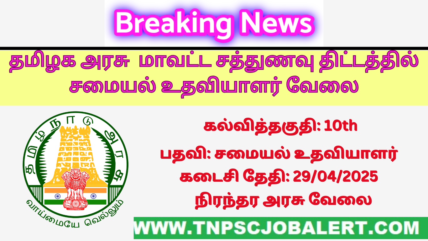 TN Nutritional Dept Job Recruitment 2025 – 139, Cooking Assistant Post Short Details:-