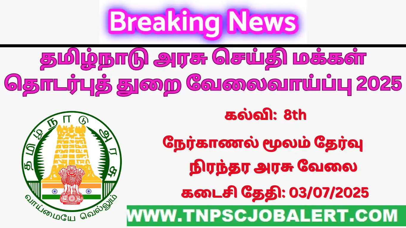 TN Public Relations Dept Job Recruitment 2025 official notification available on (21/06/2025 )