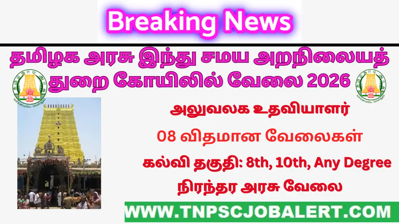 According to the post of TNHRCE Senior Citizens Home Job Recruitment 2026 – Various, Office Assistant & Driver Post recruits Various candidates to select. All candidates have to be requested to check the current job openings of TNHRCE Senior Citizens Home Job Recruitment 2026 before applying to this job recruitment.