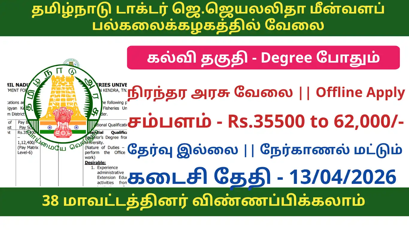 | Organization | TNJFU – Tamil Nadu Dr. J. Jayalalithaa Fisheries University |