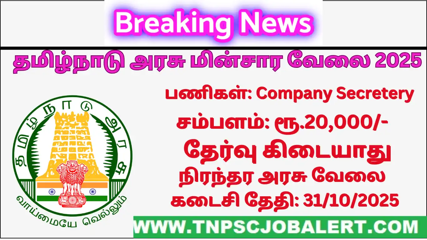 According to the post of TNPDCL Job Recruitment 2025 – Various, Company Secretary Post recruits Various candidates to select. All candidates have to be requested to check the current job openings of TNPDCL Job Recruitment 2025 before applying to this job recruitment.
